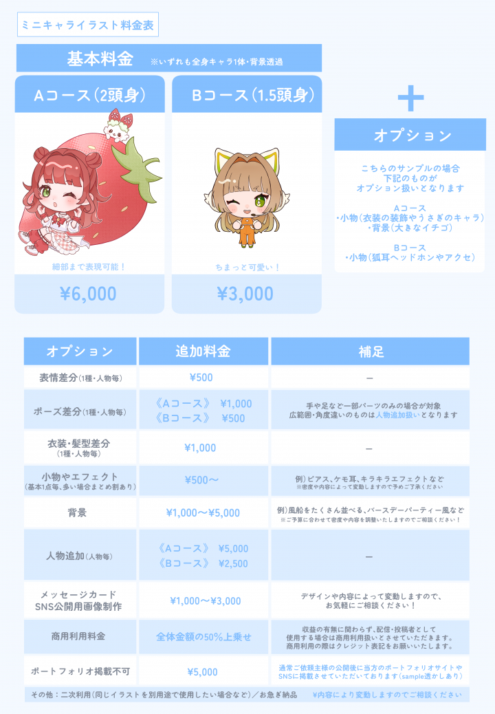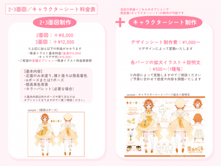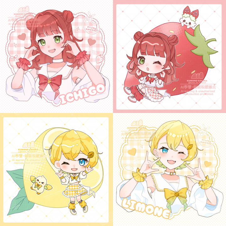 歌ってみたサムネ/配信用/設定画(二・三面図)/プレゼント/グッズ用/キャラデザ/ミニキャラ/マスコットキャラ/立ち絵/一枚絵/アイコンなど様々な用途のイラスト制作を承ります。 |