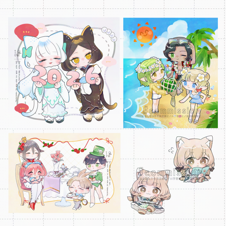 リピートでOCの水着姿をご依頼しました。デザインからお願いしたため、とてもわくわくしながら制作期間を過ごせました。本当にとても可愛く描いていただき満足しております!いつも優しく朗らかなお人柄でご対応くださるので、この度も安心してお取引できました。またぜひご依頼させてください。
