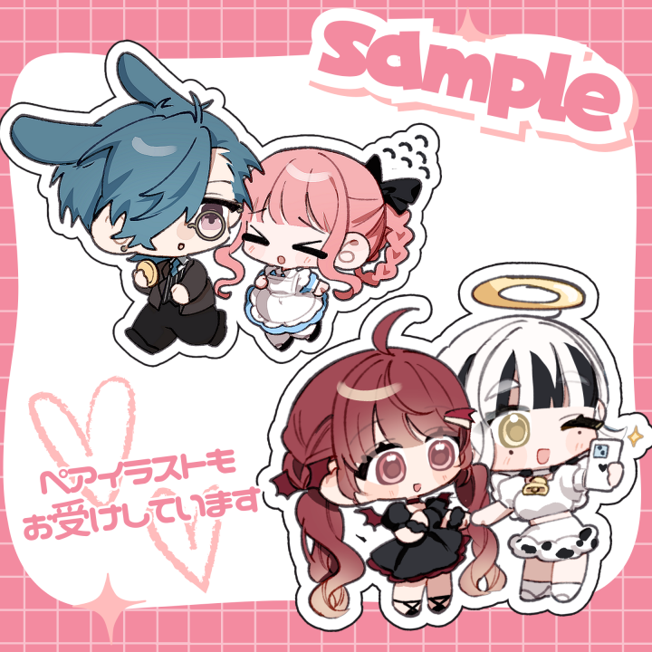 素敵なSDイラスト描いて頂きました! 今回ペアの方をお願いしたのですが、少ない資料の中でも可愛らしい絵柄でペアを書いていただけてとても気に入っています! ありがとうございました!