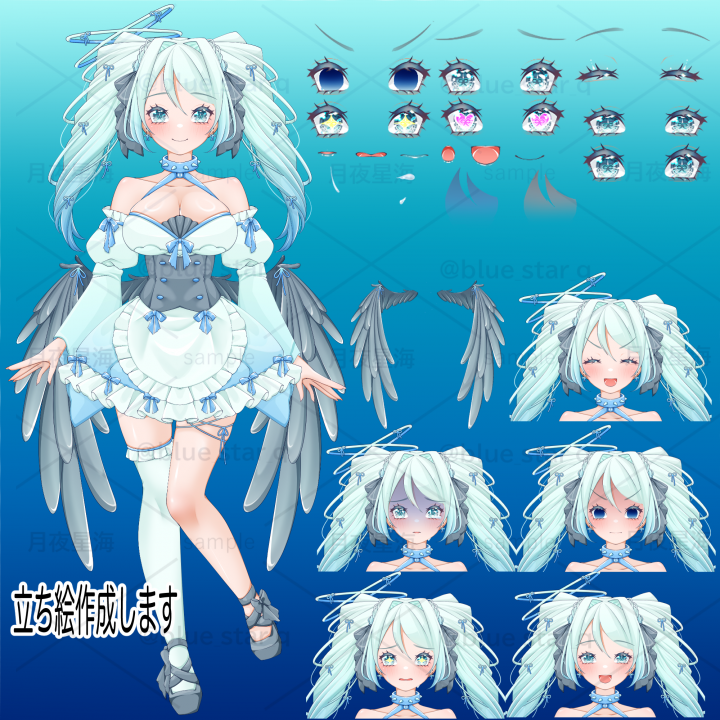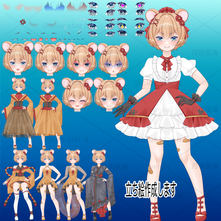 今回は、前にイラストを描いてもらったうちの子の立ち絵を依頼いたしました! 衣装差分や髪型差分等、色々な注文に全て対応してくださり、とても満足です!