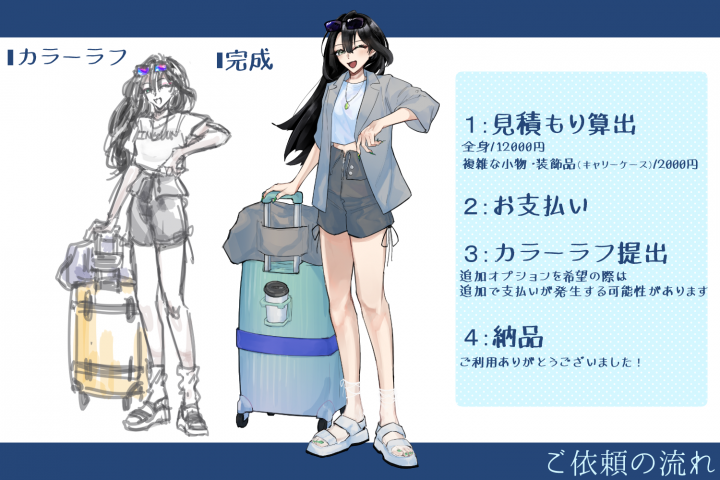 オリジナルキャラクターの立ち絵を作成いたします。 |