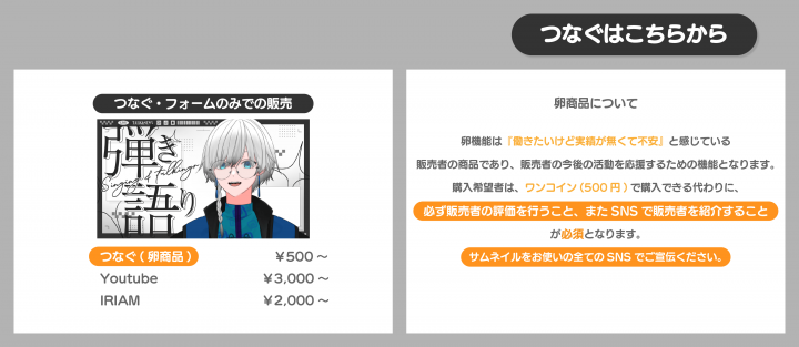 購入者へのお願い | 卵機能は『働きたいけど実績が無くて不安』と感じている販売者の商品であり、販売者の今後の活動を応援するための機能となります。 |