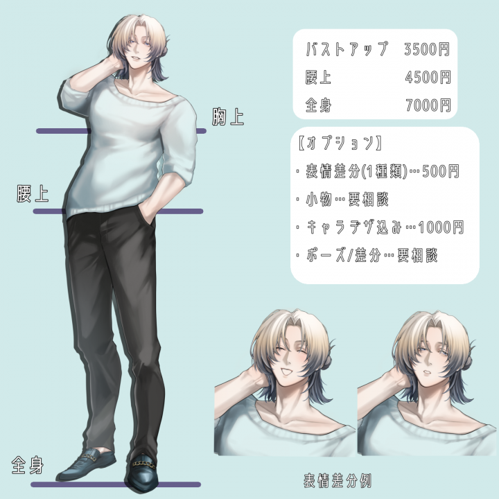 TRPG用の立ち絵を依頼させて頂きました。 短い納期にも関わらず、沢山提案もして頂き丁寧にご対応して頂き、とても助かりました。 またご縁がありましたらよろしくお願い致します。