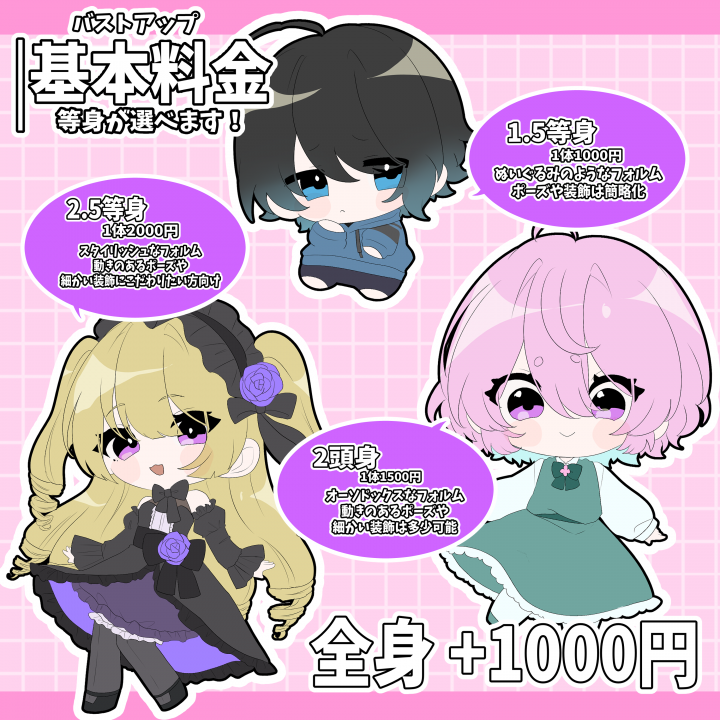 ・ご相談,お見積りの際は依頼内容やキャラクターの詳細をしっかり記載して頂くようお願いいたします。 |