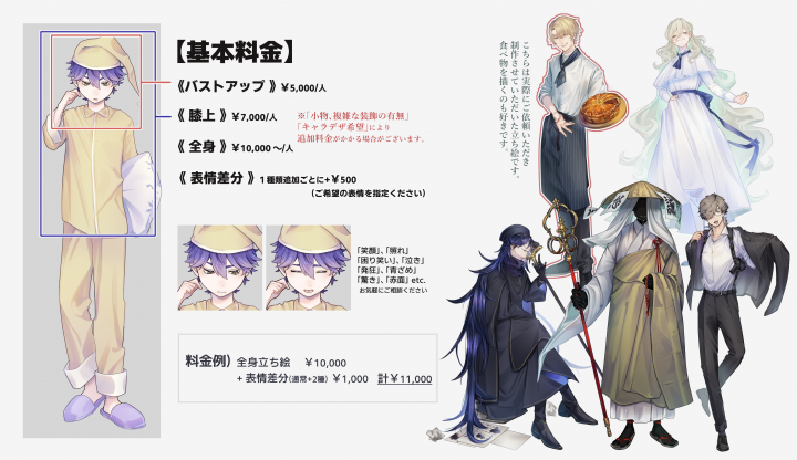 TRPG、ゲーム、動画等で使用できる立ち絵を制作いたします。 |