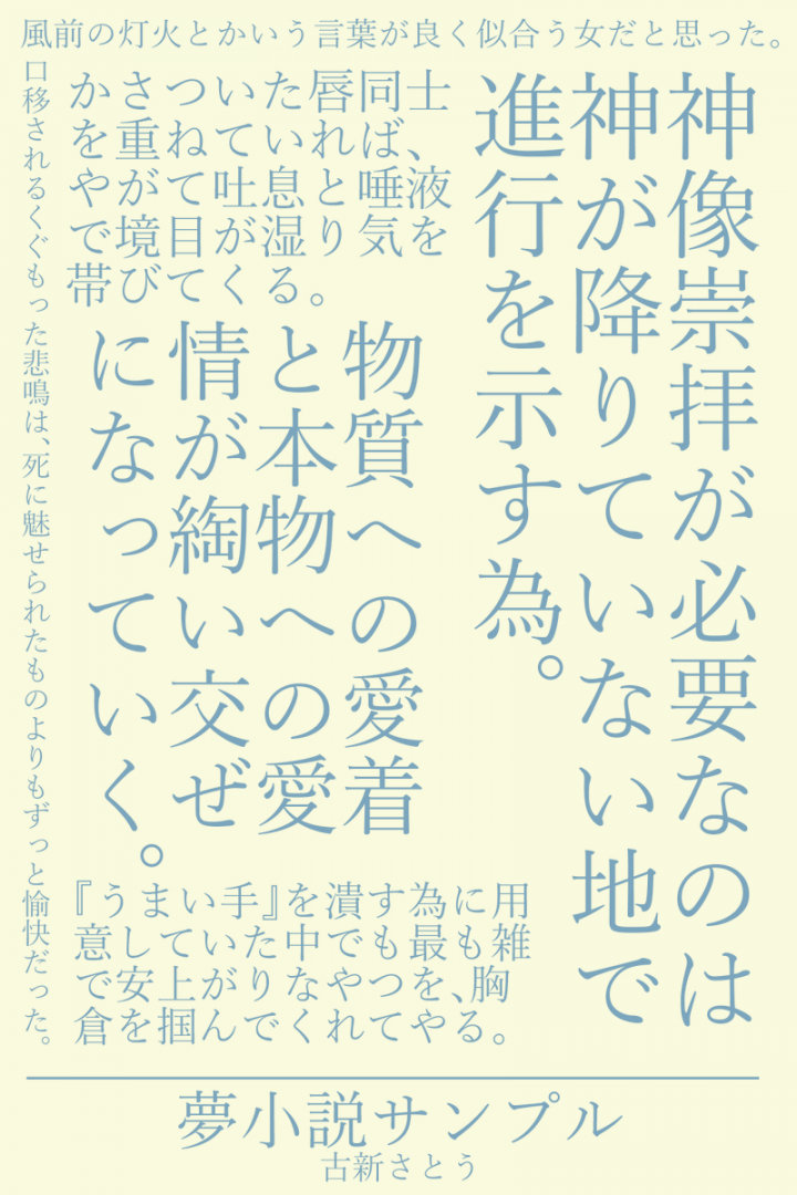 著作権譲渡はしません。完全個人観賞用です(支部投稿納品は除く)。 |