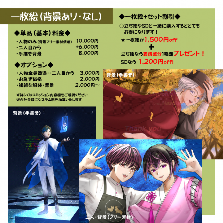 ・他絵師様のイラストで著作権をお持ちでない場合‥+5,000円