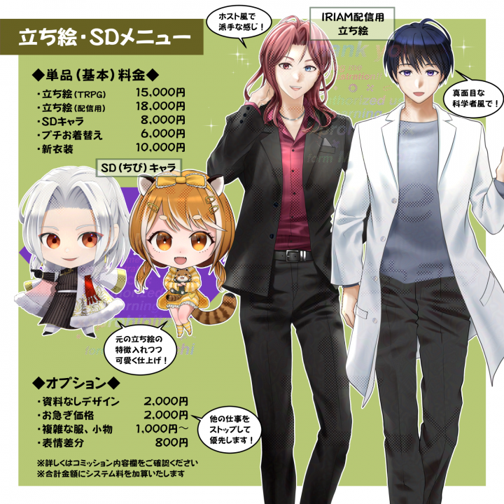 ○立ち絵(配信用)‥18,000円
