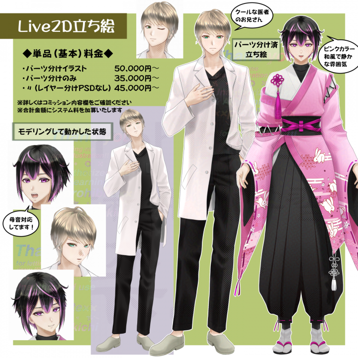 ○Live2D用パーツ分け立ち絵(最初から制作)‥50,000円〜
