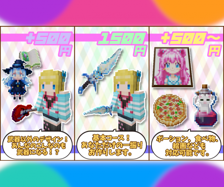 デザイン歴16年・マインクラフト歴11年、大抵のことは可能です。 |