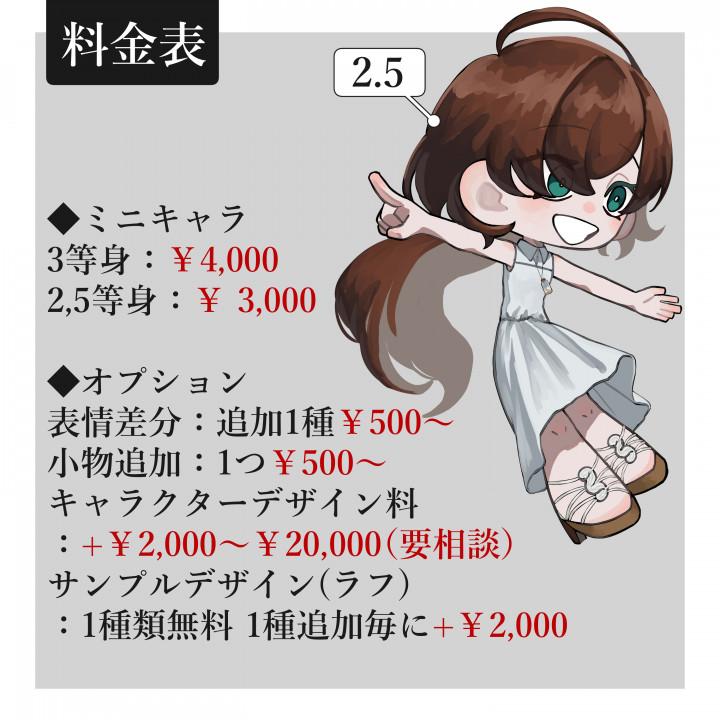 2.5等身、3等身のかわいいミニキャラをお届けします!