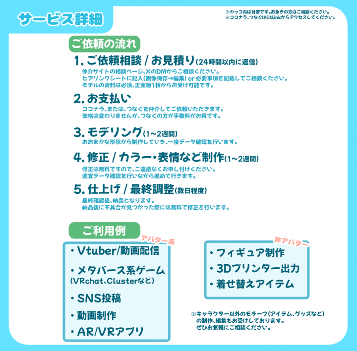 配信やゲーム、オリジナルフィギュアに! 修正回数無制限です