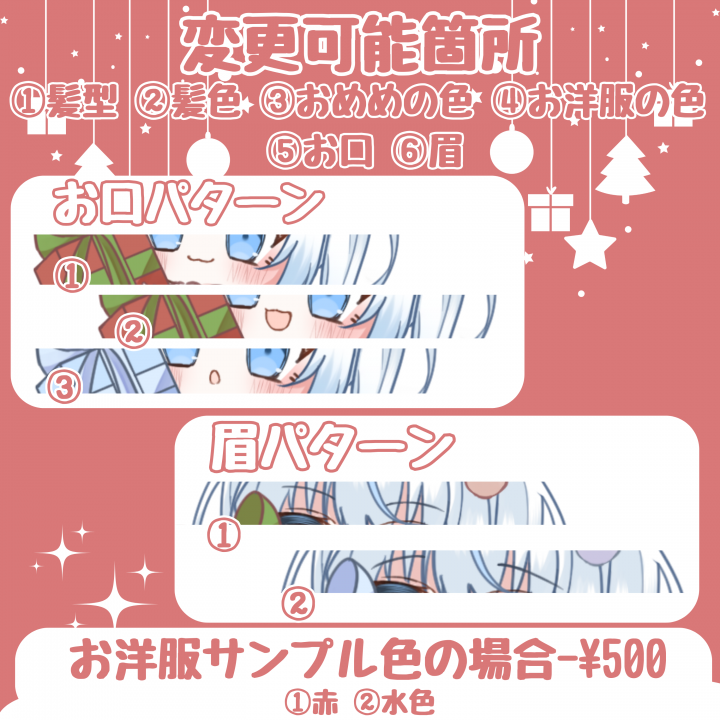 【基本料金】1枚 @2000 (お洋服サンプル色で-@500) |