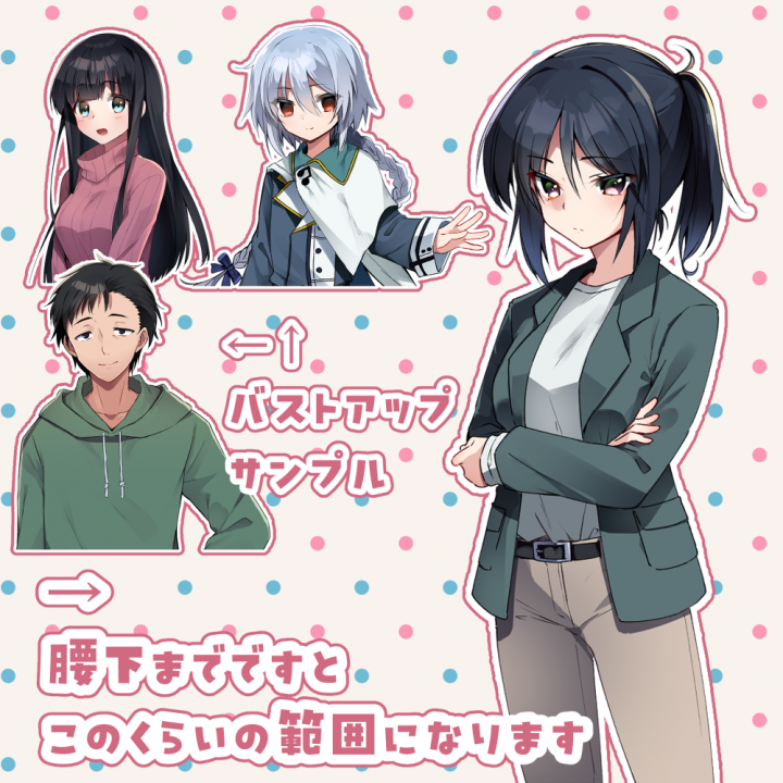 TRPG/動画配信/ゲーム等に使いやすい立ち絵を制作いたします。 |