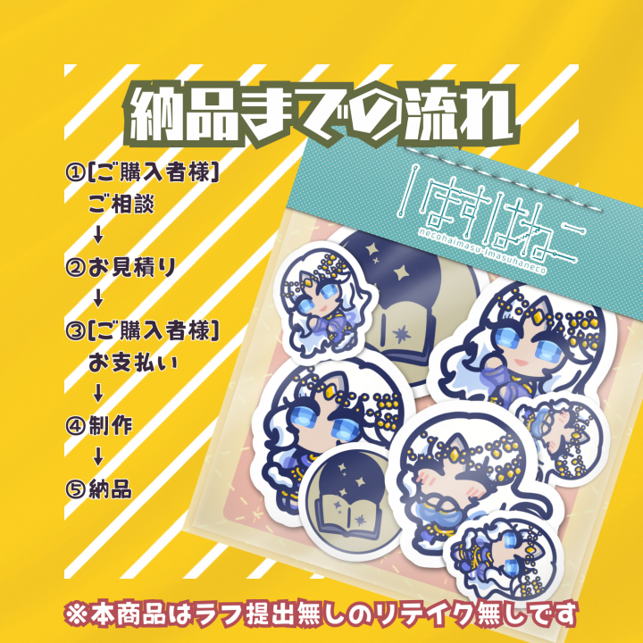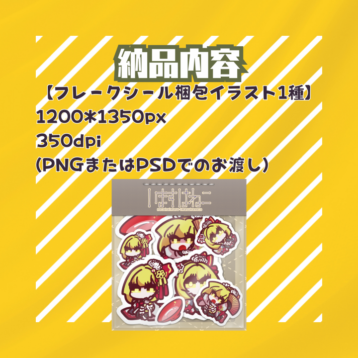 フレークシール風のオリジナルキャラクターのデフォルメイラストを制作いたします。 |
