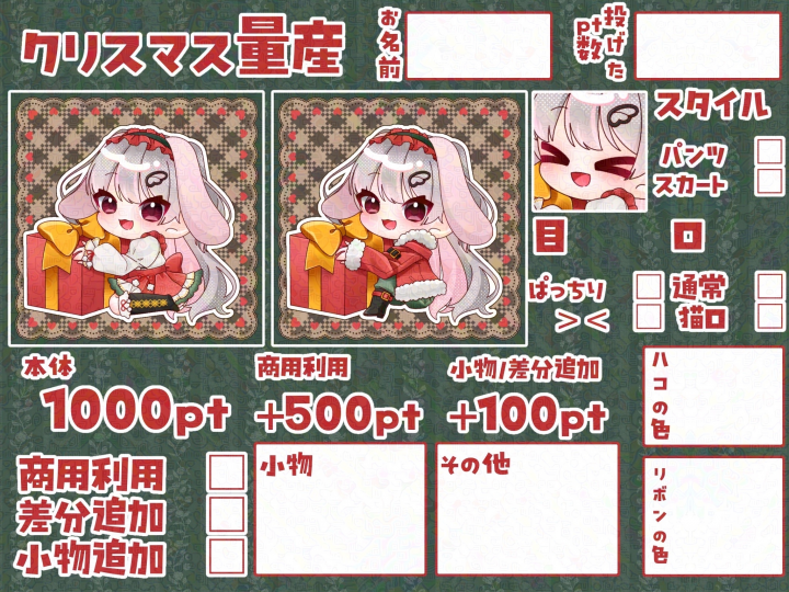 可愛いクリスマス量産を描いていただけてほんとに嬉しかったです! 迅速な対応ありがとうございました!