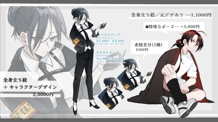 素敵な衣装差分含めた立ち絵を頂きました! イラストの雰囲気に惹かれ依頼させて頂きましたが、イメージ以上にカッコ良く素敵に描いて頂けました! 迅速且つ丁寧なお取引も含め、本当にありがとうございました!