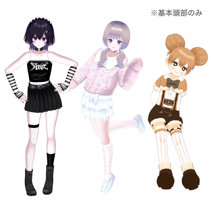 Vroidにて顔・髪のみのモデリングをさせていただきます。体は既存のテクスチャ、服装は既存プリセットの中から選んでお渡しします。 |