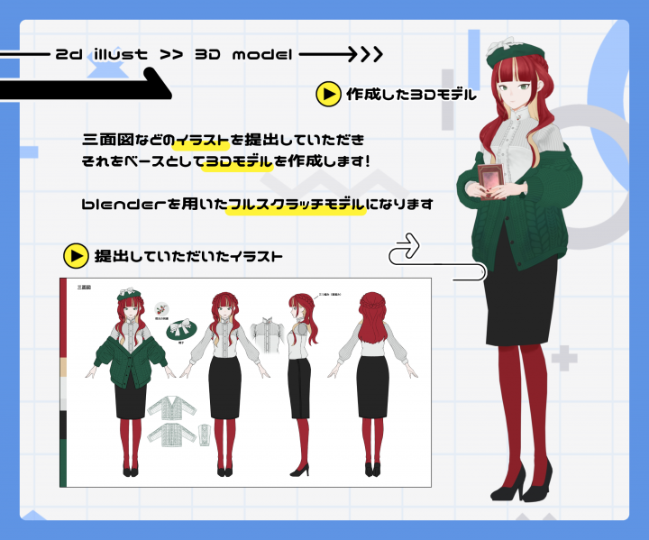 イラストそっくりの3Dモデルを制作します