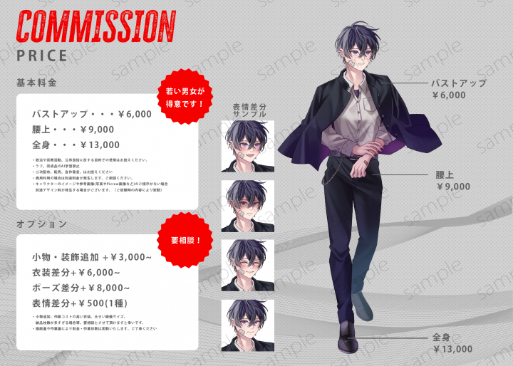 ・一次創作(オリジナルキャラクター)のみ受け付けております。版権キャラクターはご遠慮ください。 |