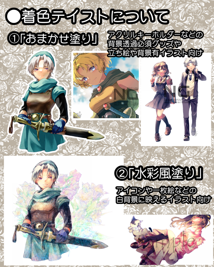 漫画やアニメなどの版権キャラクターでのご注文はお控えください。(※例外として東方は可) |