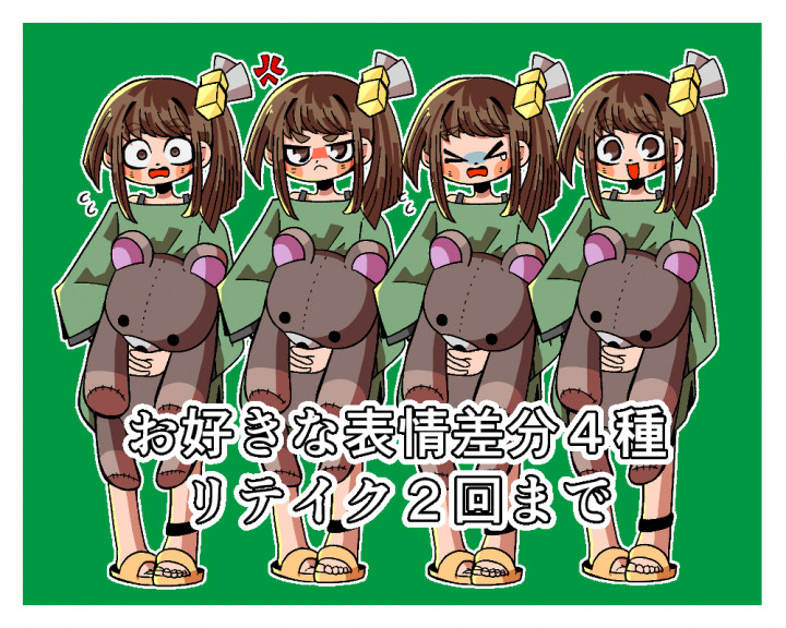 選べる表情差分4種キャラ立ち絵制作