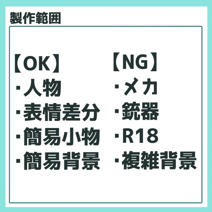 複雑な小物などは描けない可能性もありますのでご相談ください。 |