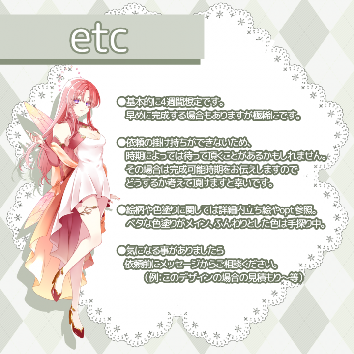 TRPG用の立ち絵・OCの立ち絵を描かせていただきます。 |