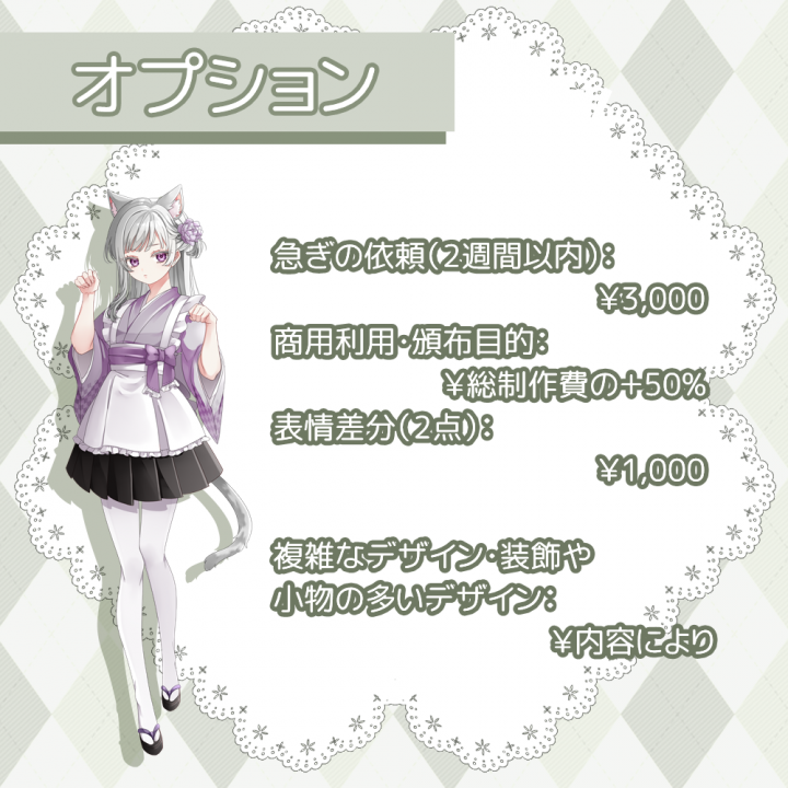 ご依頼の際は以下のテンプレートをうめてメッセージからご連絡くださいませ。 |