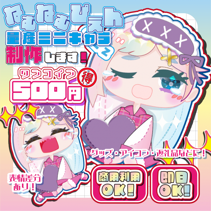 ○ねむねむぴえんなSDミニキャラを卵価格500円で制作いたします! |