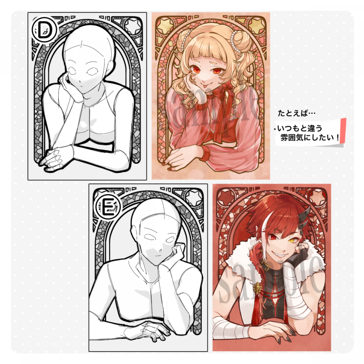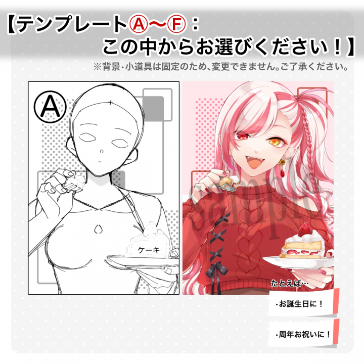 テンプレート選択であなたのキャラを一枚イラストにいたします!