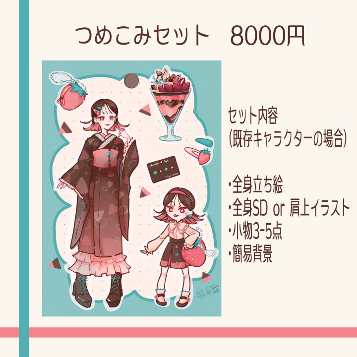 ※納品後のリテイクは行っておりません。事前のご相談時やラフリテイクの際に詳細を必ずご記載ください(どうしてもイメージと違うという場合はご相談ください) |