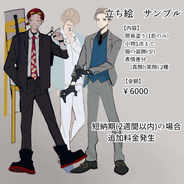TRPGやオリジナルキャラクターの立ち絵を制作いたします。 |