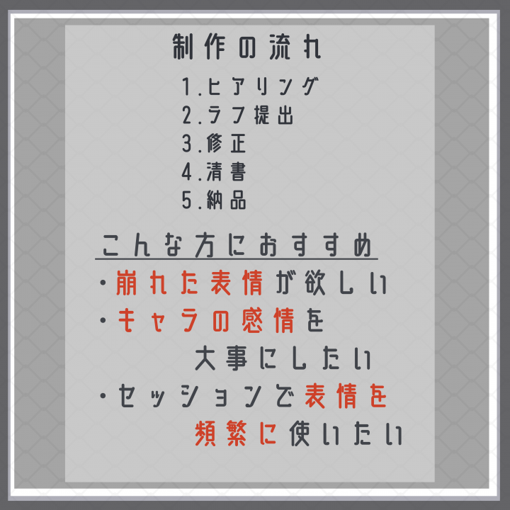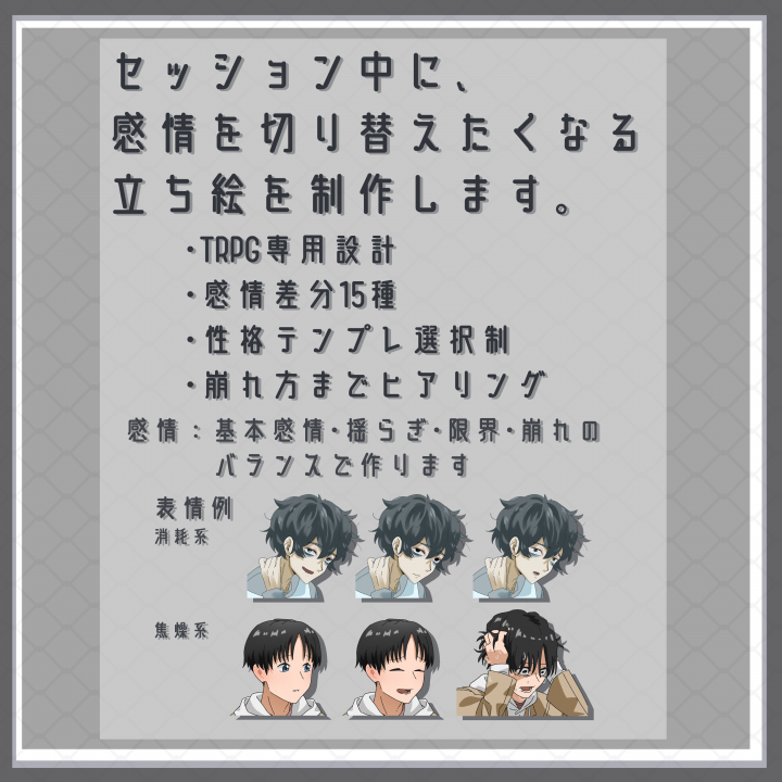 TRPG専用|感情差分付き立ち絵制作(表情15種)