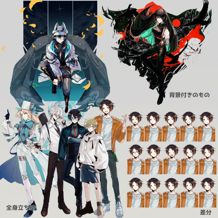お取引時のやり取りを省き、リテイクなしとすることで料金、納品日数を抑えた,表情差分5つつきの全身立ち絵のプランです! |