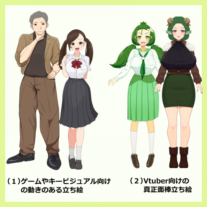 Vtuberのキービジュアルや自作ゲーム、TRPGなどに使える立ち絵を制作します。 |