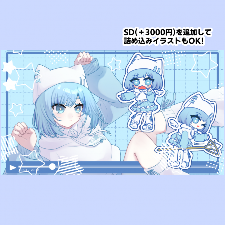 こちらの商品ページでは、サムネイルや動画MVなどにお使いいただける1枚絵を制作いたします。 |