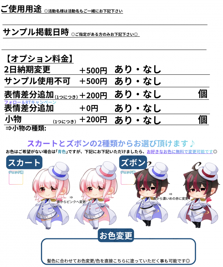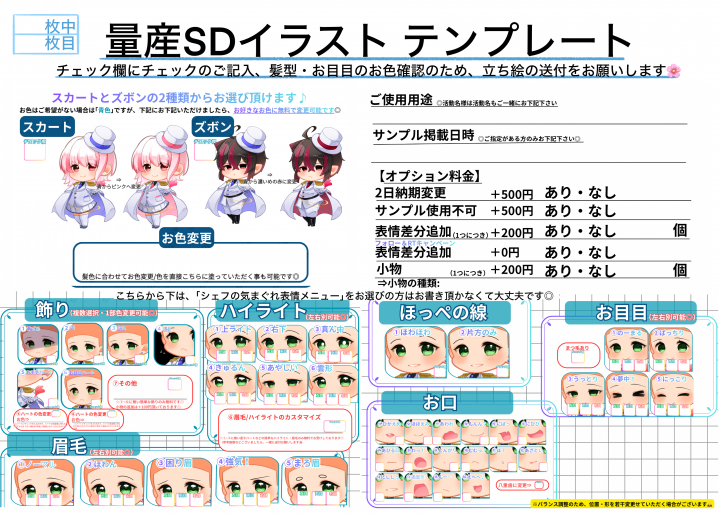 🌟表情差分のご注文の方は、御手数ですが、表情差分分テンプレートのご記入お願い致します🌟 |