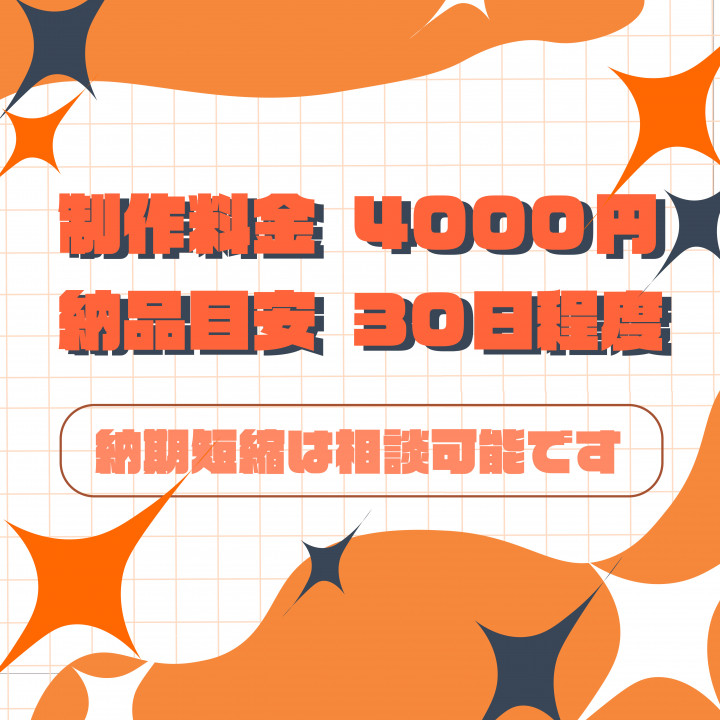 納品までの日数を早めたい場合は、依頼時に相談して頂けますと、可能な範囲で対応いたします。 |