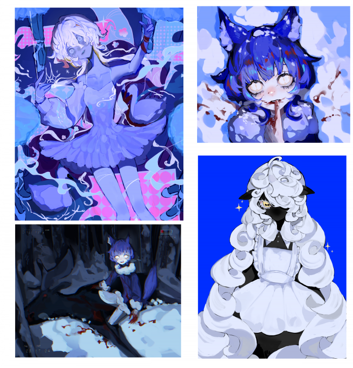 厚塗りで仄暗さのある可愛らしいイラストを描きます