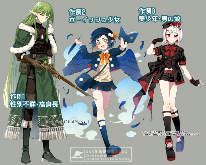 ・納品物の自作発言、二次配布、転売、回転や変形など元絵の形状や色味を大幅に損なう加工、AI学習等の行為は禁止いたします |