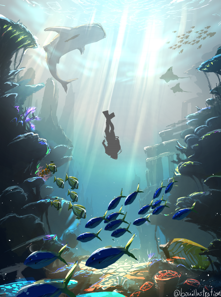 ・ご依頼者様のオリジナルキャラクターや動物などに背景を合わせた一枚絵のコミッションです。 |