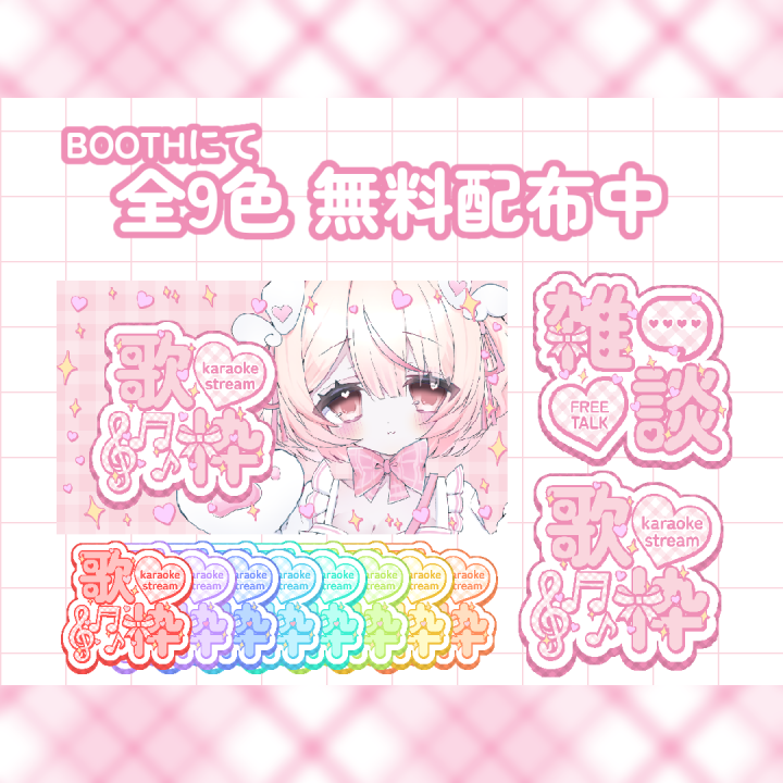 こちらはBOOTHで無料配布している歌枠雑談ロゴのカラーカスタマイズになります。 |