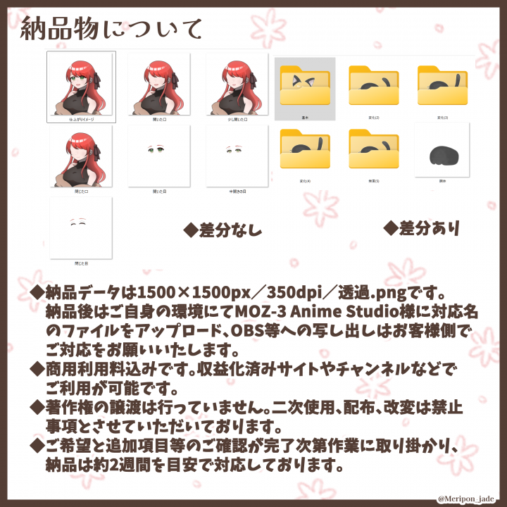 イラストだけで簡単に動く配信アバターツール通称『アニスタ』様(MOZ-3 Anime Studio様)対応イラストです。 |
