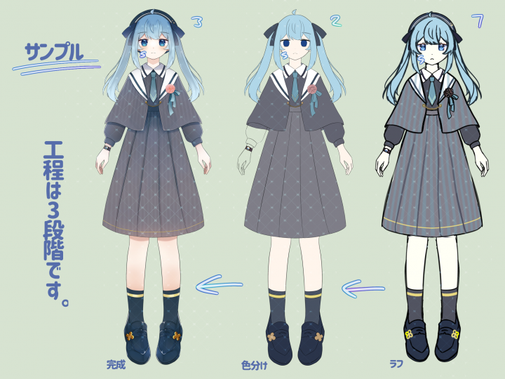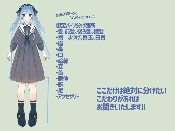 【お試し】等身パーツ分けイラストを描きます!