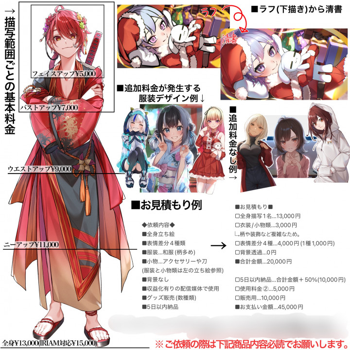顔周りから全身描写まで幅広く対応可能です!
