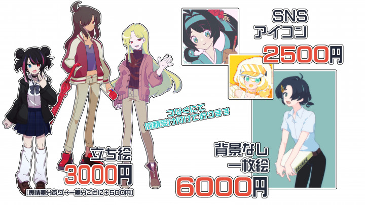 イラスト・立ち絵・Live2Dの依頼や販売に!