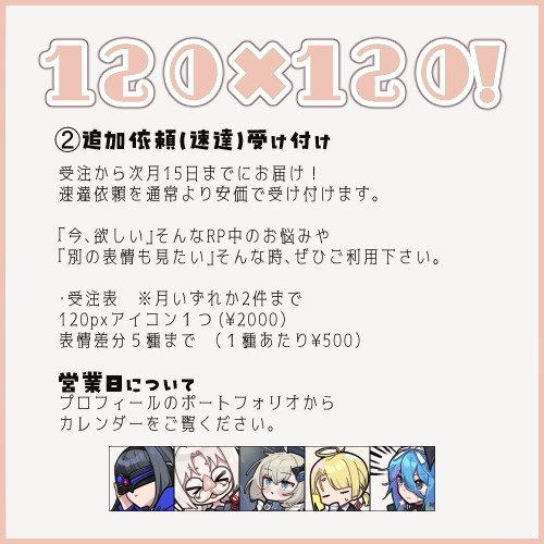 120×120!4~6月 /月1書き下ろしアイコン+α