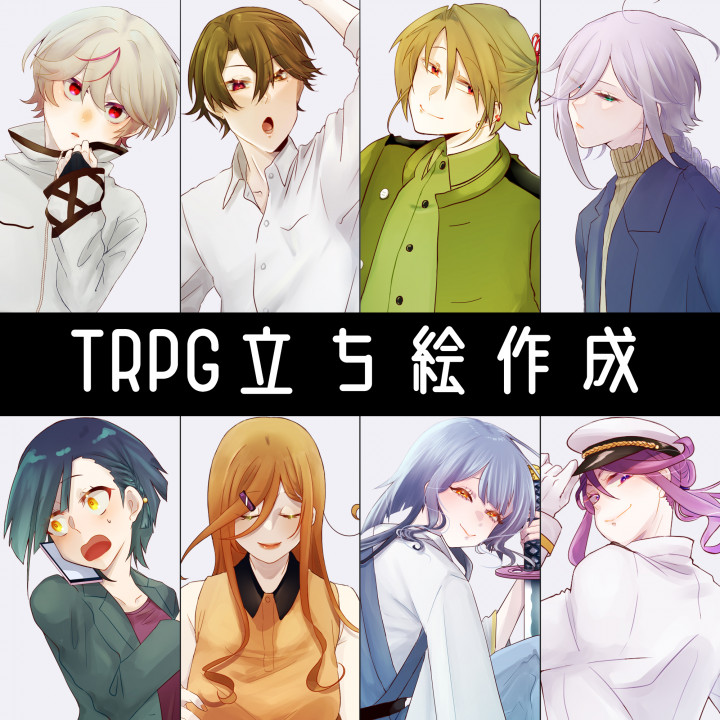 TRPGの立ち絵作成を主に行っておりますが、キャラクターのデザイン案などもお受けしますのでお気軽にお声かけください!