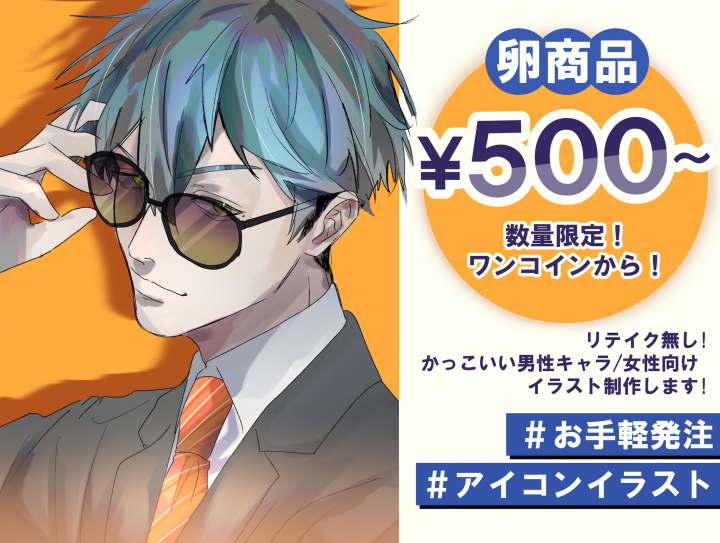 閲覧頂きありがとうございます! アタロウと申します👓 初心者の為至らない点あるかと思いますが精一杯頑張りますのでよろしくお願いします! ■得意分野 男性キャラ/女性向けイラスト 短髪
